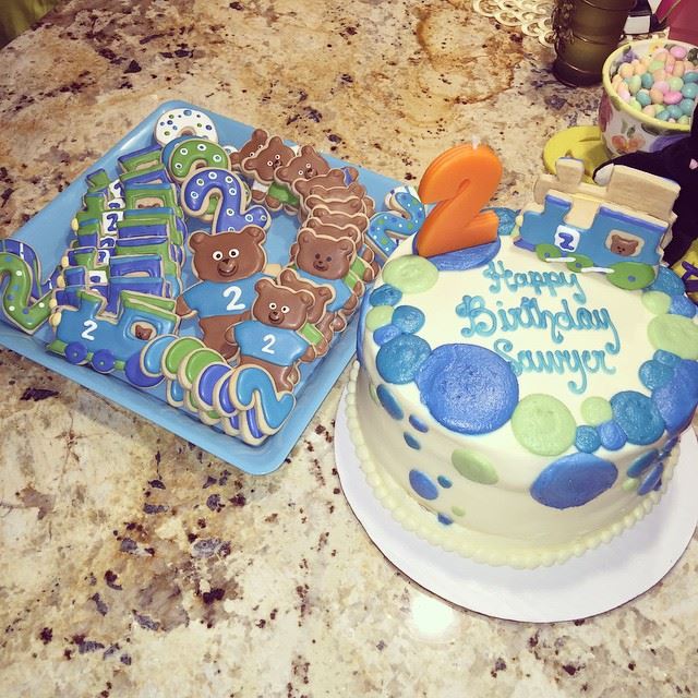 Did these trains and teddy bears for the child/grandchild of some long time friends. I decided to try my first go at a 3D/stand-up cookie with one of the trains. Just made a couple of long rectangles to bridge them together and attached them inside with really stiff royal icing. I LOVE that they ended up using it on the cake! I recently bought the Betty Crocker 101 set of cutters because there were a couple in there that I wanted, so of course, I just got all 101! ha! Anyway, I used the train cutter from that set instead of the only other one I had which was from the Wilton 101 set, because I liked the design of this one better.
